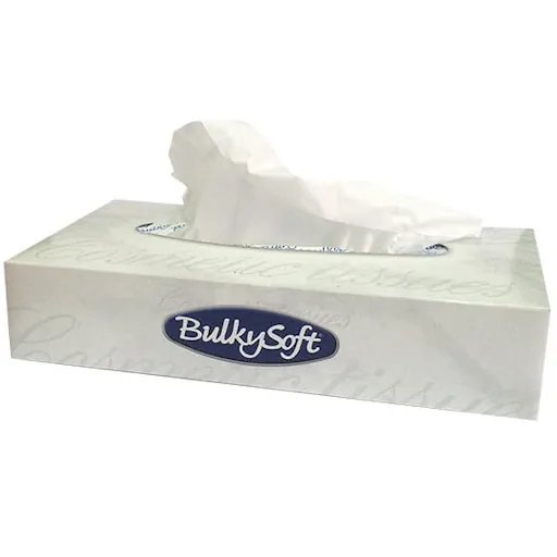Chusteczki higieniczne Bulkysoft, przeznaczone do codziennego stosowania w hotelach, biurach, gabinetach medyczny i kosmetycznych. Wykonane są z dwóch warstw delikatnego, miękkiego i przyjemnego w dotyku papieru, który nie powoduje otarć. Jego podstawą jest wyselekcjonowana, czysta celuloza. Chusteczki te wykonano w kolorze białym, z gładkim wykończeniem. Złożone w eleganckim i estetycznym opakowaniu, pozwalają na ekonomiczne i wygodne dozowanie, po jednej sztuce. Kartonik zawiera w sobie 100 sztuk chusteczek i wystarcza na długo.