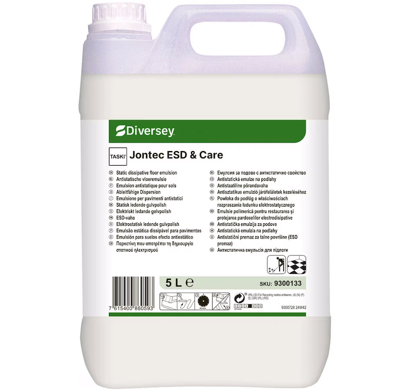 Powłoka TASKI Jontec ESD & Care jest powłoką o właściwości rozpraszania ładunku elektrostatycznego gromadzącego się na powierzchni podłóg. Rozprasza ładunkek ładunki elektrostatyczny elektrostatyczne anty
